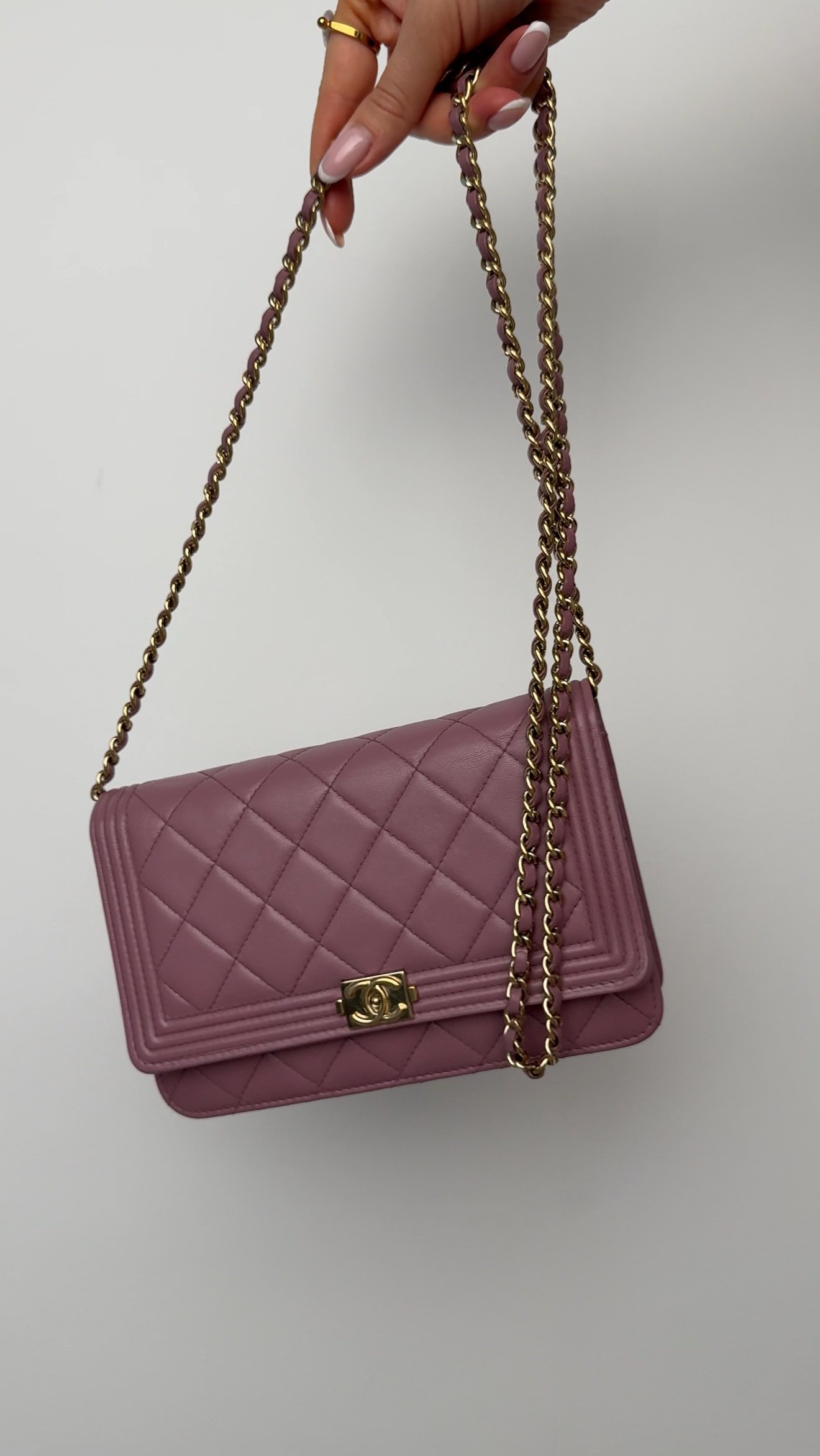 Boy Wallet on Chain у ніжному ліловому відтінку вона виглядає особливо чарівно — мікс романтики та впевненості в собі