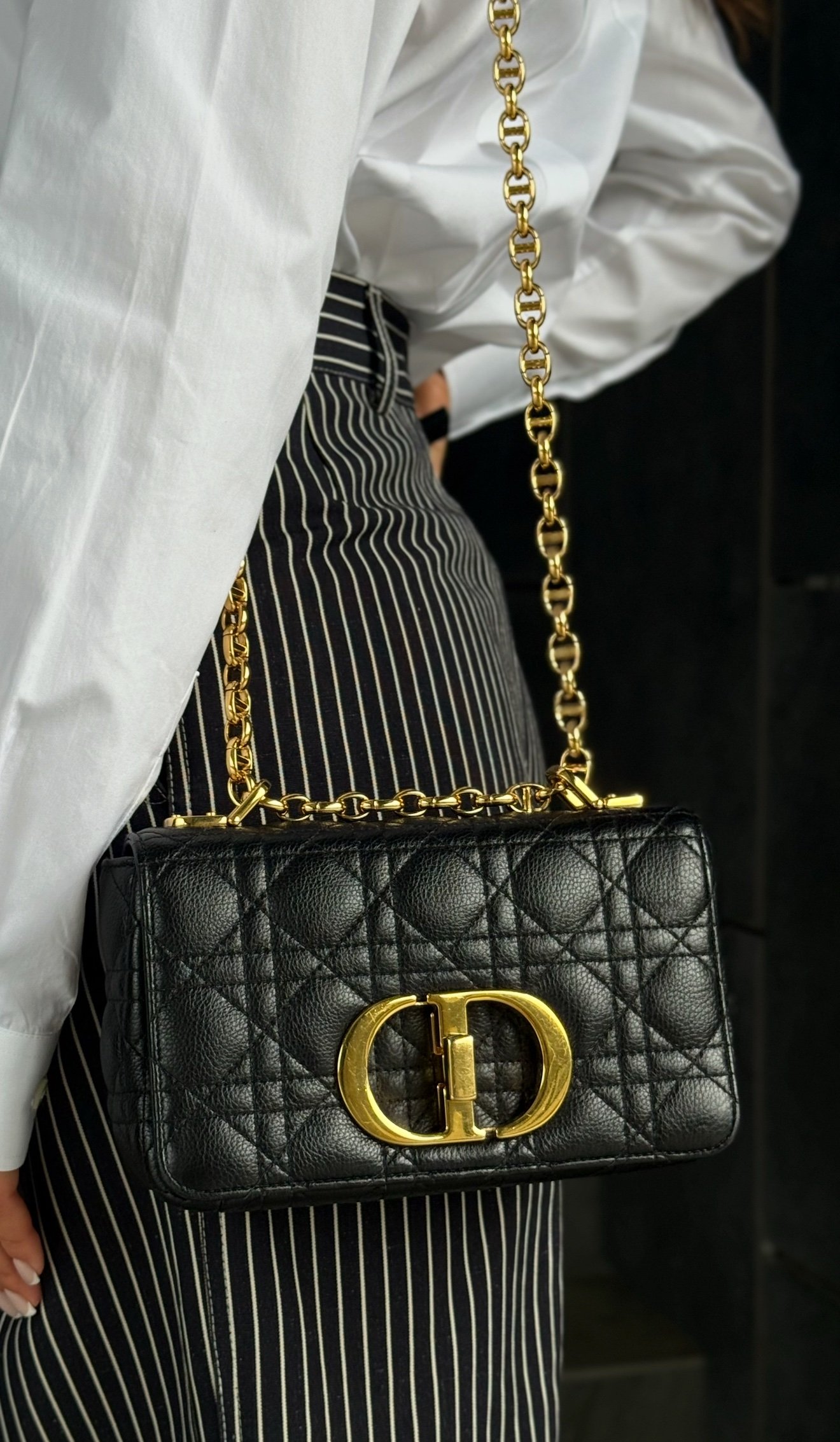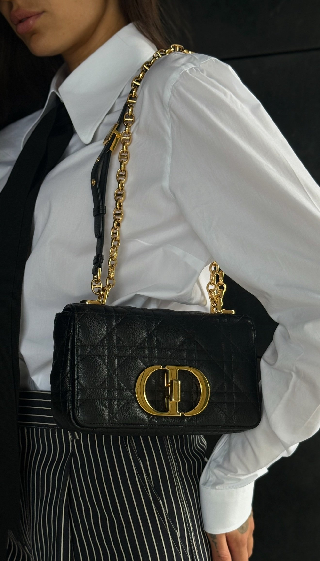 Сумка Dior Caro small у класичному чорному кольорі — втілення французької елегантності та сучасної розкоші.