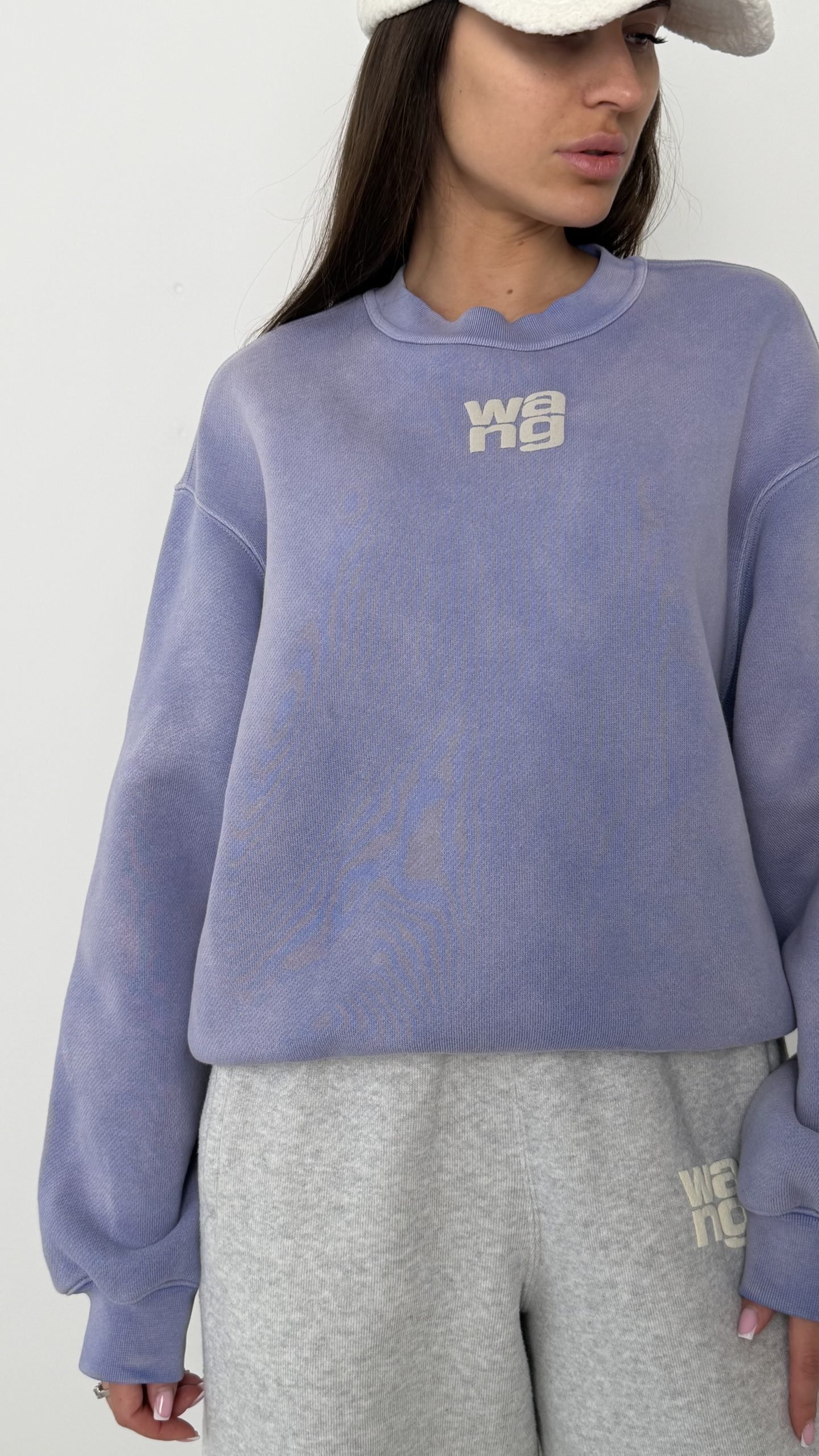 Об’ємний ліловий світшот ALEXANDER WANG у фірмовому стилі бренду. Модель виконана на флісі, має м’яку структуровану тканину, спущену лінію плеча та сучасний oversize-силует. Прикрашений логотипом wang у тон. Ідеальний варіант для стильних повсякденних луків.