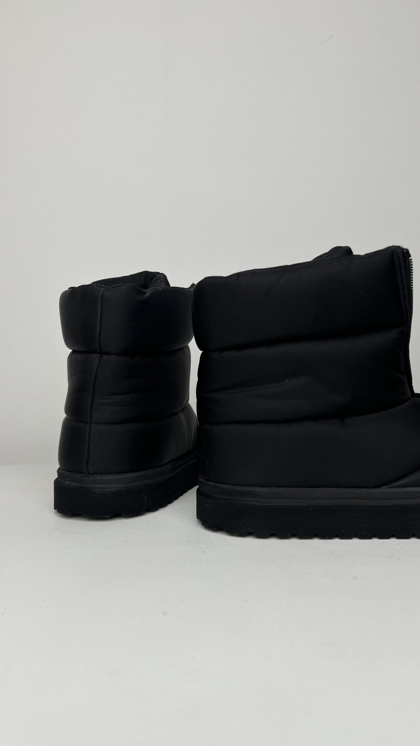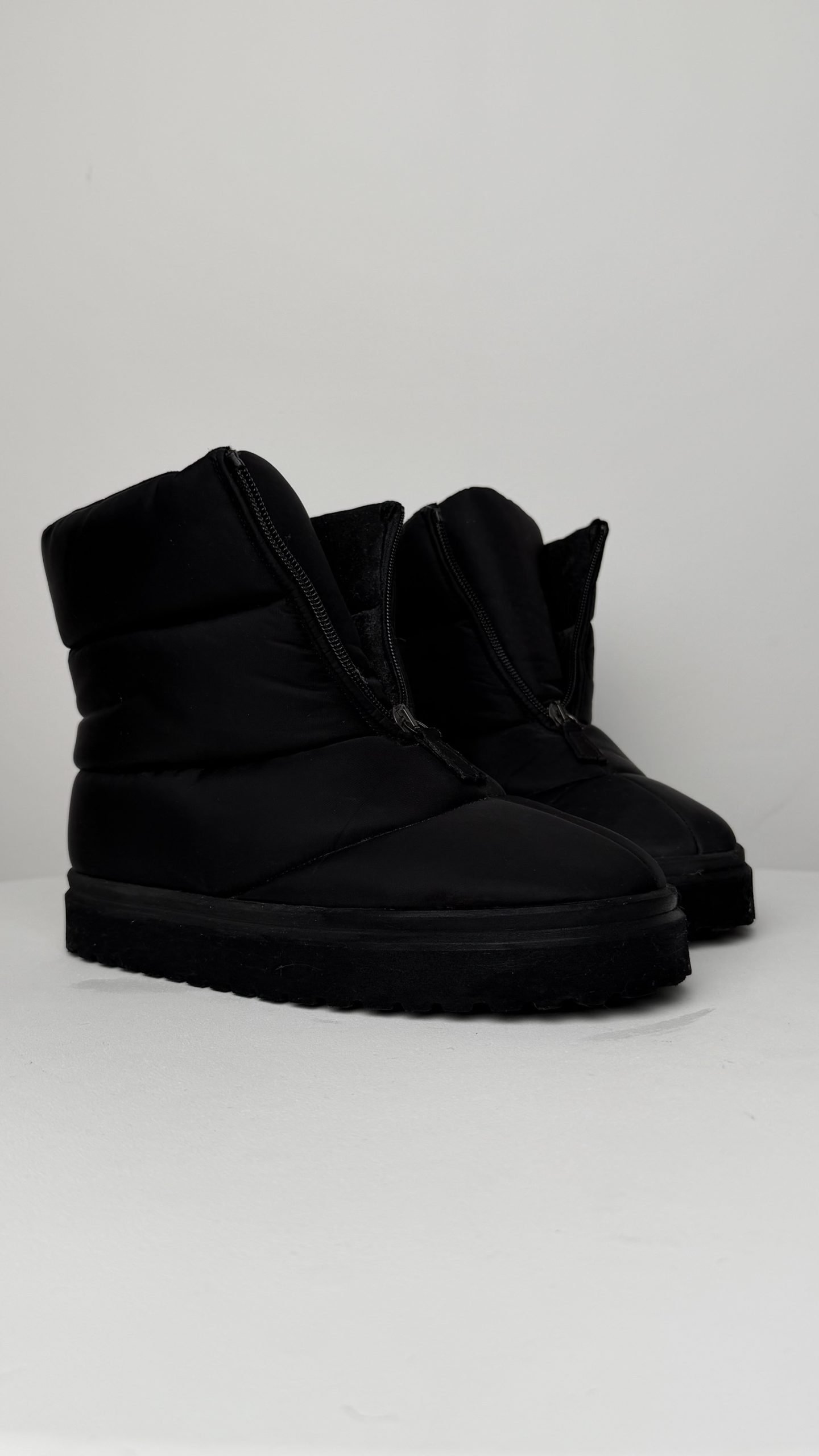 Ультратепла модель у чорному кольорі з матовим нейлоновим верхом. Лаконічний дизайн доповнений центральною блискавкою для зручного взування. Усередині — м’яке утеплення, що надійно захищає від холоду