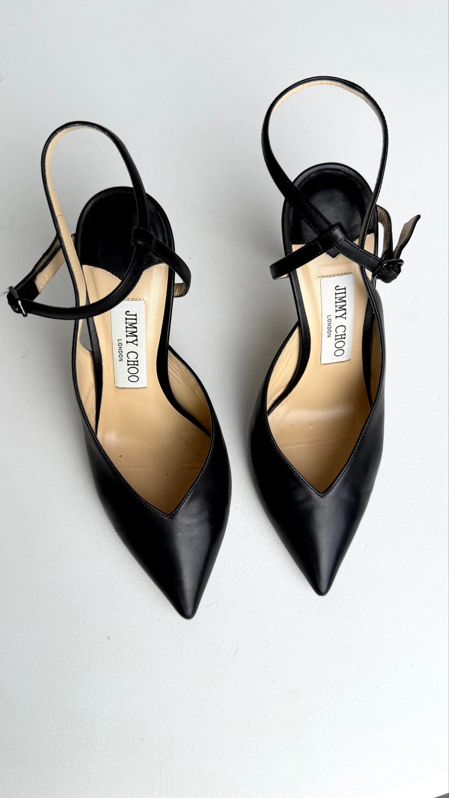 Втілення бездоганного стилю та статусу — легендарні туфлі Jimmy Choo тепер можуть стати частиною вашого образу. Ця модель створена для тих, хто не йде на компроміси між комфортом та елегантністю. Глибокий чорний колір, преміальна гладка шкіра та фірмовий витончений силует — це інвестиція у ваш бездоганний вигляд. Будьте в центрі уваги на будь-якому заході.