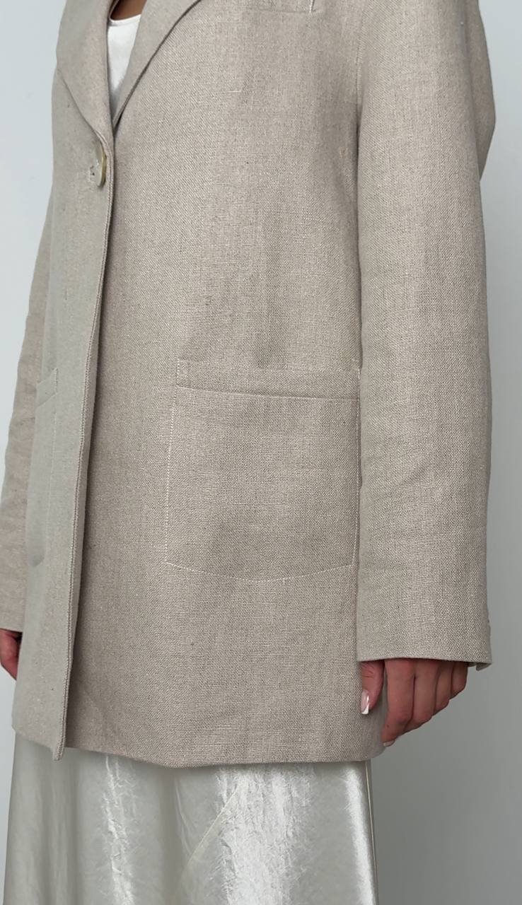 Льняний жакет з масивним гудзиком