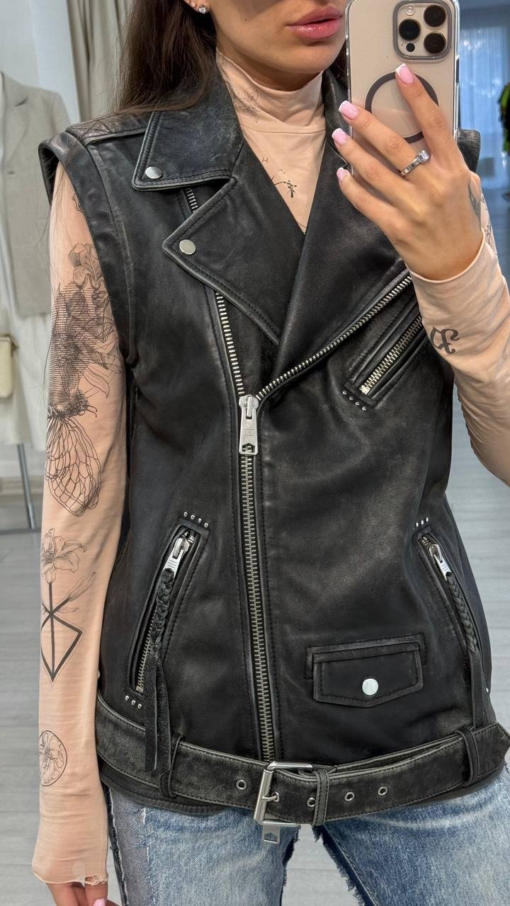 Жилет зі стилізованої вінтажної шкіри у форматі байкерської косухи