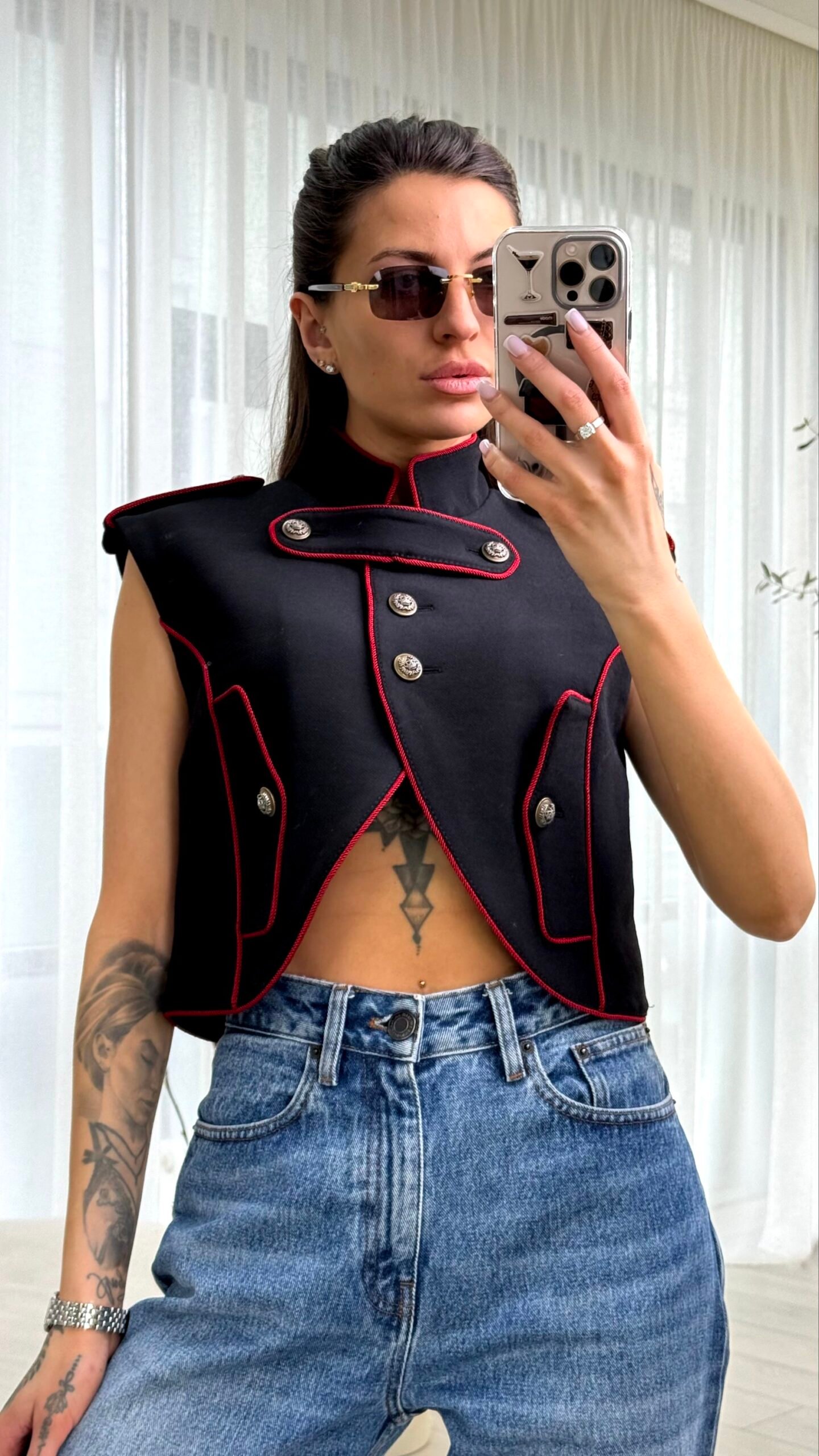 Додайте до свого гардероба елемент французького шику з виразним характером. Цей жилет від Maje — ідеальне поєднання мілітарі-естетики та сучасної жіночності. Завдяки архітектурному крою та контрастним деталям, він миттєво стає головним акцентом будь-якого образу.